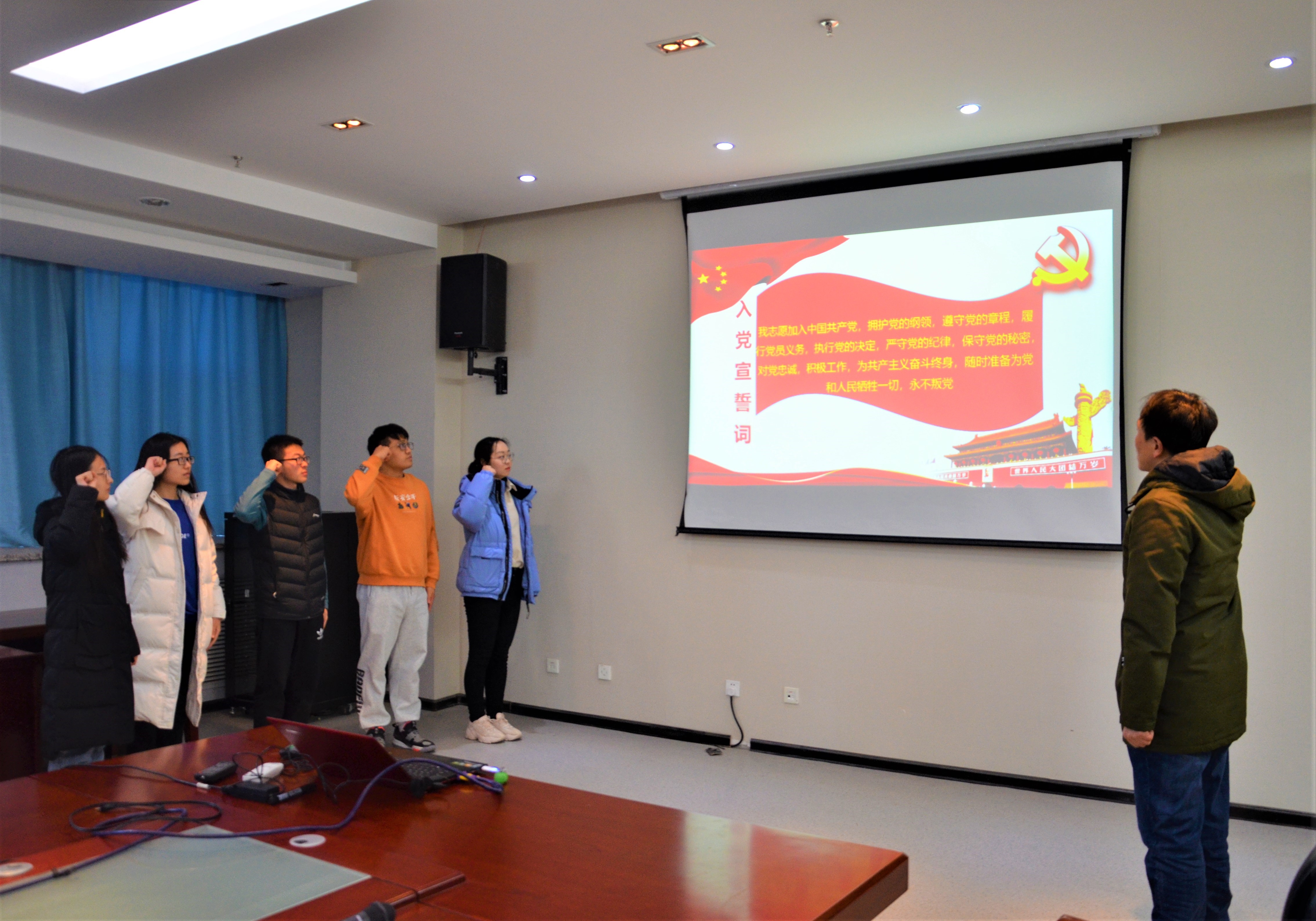 五位同志分别汇报了自己在过去一年预备期的学习和进步,宣读了转正申请书。入党介绍人何力军、李海波、谭永涛、马薇等同志分别对他们在预备期的表现进行介绍和评价。之后五位同志回避,与会正式党员经过讨论、举手表决,同意五位同志的转正申请。五位同志回到会场后,马薇同志代表组织向他们宣布了支部决议。任基宁、马明远、李瑞、祝钰灵、王凌霄同志分别做表态发言。支部书记何力军同志带领五位同志面向党旗,庄严地进行入党宣誓。