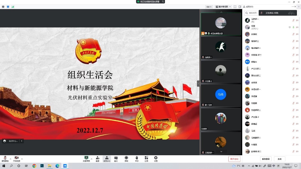 2022年12月7日晚上,学院研究生团支部采用线上会议形式召开了“学习二十大、永远跟党走、奋进新征程”学习教育专题组织生活会。学院全体研究生团员参加,会议由团支部书记何显主持。