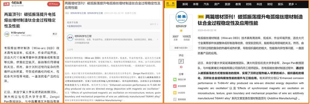 吴斌涛副教授团队联合澳大利亚伍伦贡大学李会军教授团队,中船黄埔文冲船舶有限公司邵丹丹工程师团队在电弧熔丝增材制造工艺应用研究领域取得重要突破,研究成果近期以三篇系列论文形式分别发表在增材制造领域国际顶刊《Additive Manufacturing》(中科院一区TOP)和《Material Characterization》(中科院一区TOP)上。吴斌涛为论文第一作者或通讯作者,无码动漫