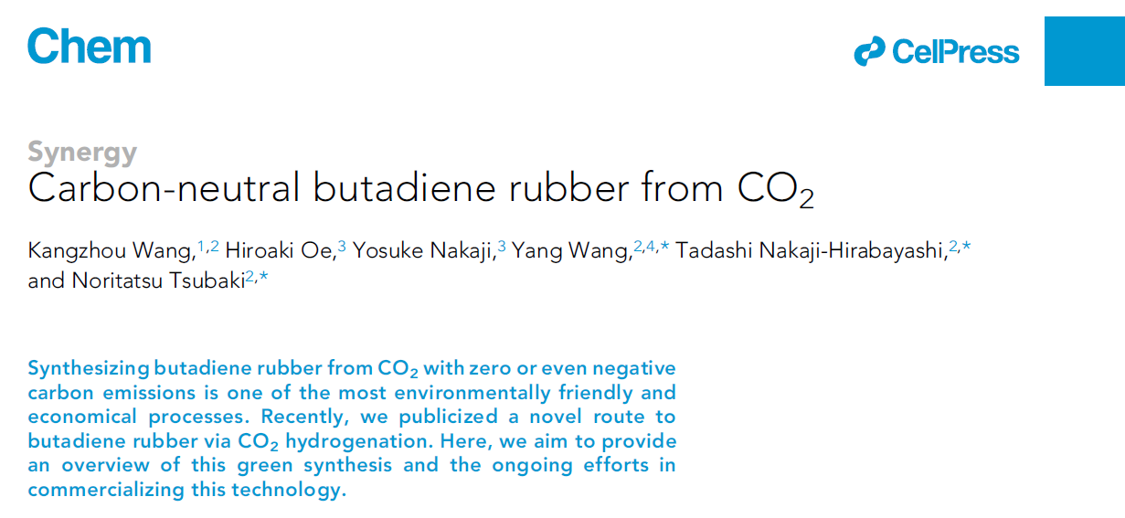 该成果聚焦应对丁二烯橡胶需求量持续攀升与“减碳”之间的矛盾,创新性地提出发展“零碳”、甚至“负碳”的丁二烯橡胶合成新技术,即以CO2为原料经多步反应工艺合成丁二烯橡胶,力求在开辟非化石原料基丁二烯橡胶合成新路线的同时,实现温室气体CO2的资源化利用。目前,基于该技术生产的丁二烯橡胶已在东洋轮胎株式会社应用于赛车轮胎的实用化生产,所生产轮胎将装配赛车参加巴黎-达喀尔沙漠越野拉力赛和德国纽堡林24小时耐力挑战赛,以反馈重要信息到下一步量产技术中,有望于2029年底之前实现商业化应用。