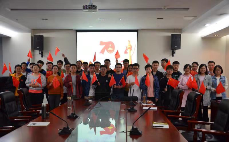 2019年10月1日上午,实验室团支部、研究生分会组织全体研究生在科技楼A601会议室集体收看庆祝中华人民共和国成立70周年大会直播,并邀请李海波等老师参加。