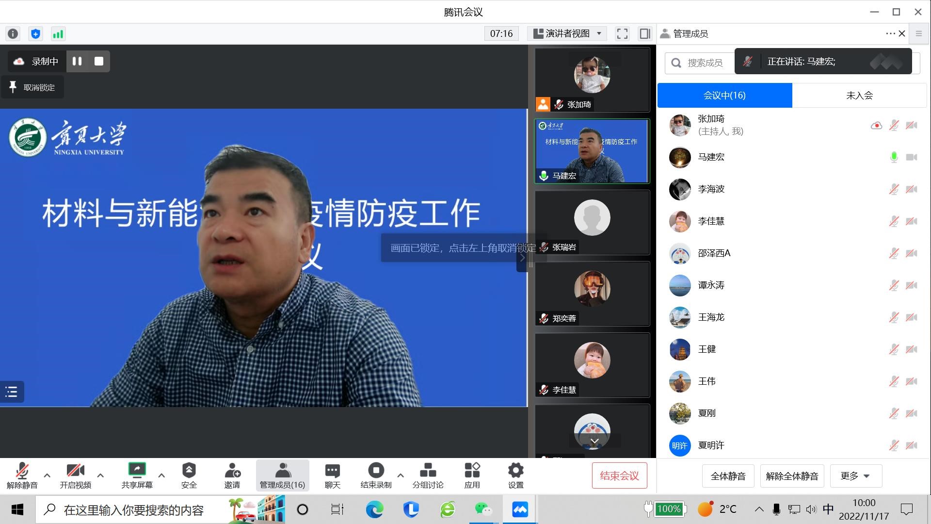 2022年11月17日上午,学院通过线上会议形式召开疫情防控专题会议,会议由直属党支部书记马建宏主持,学院疫情防控专班全体工作人员参会。