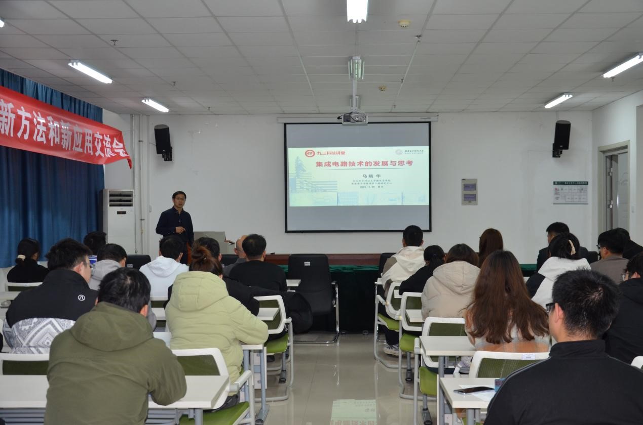 联合主办学术报告会,特邀九三学社陕西省委副主委、陕西省政协常委、西安电子科技大学教授马晓华在贺兰山校区科技楼B301会议室作了题为“集成电路芯片发展机遇与挑战”的学术报告。报告会由李海波教授和王政教授主持,学院全体师生及相关领域的师生聆听了报告。