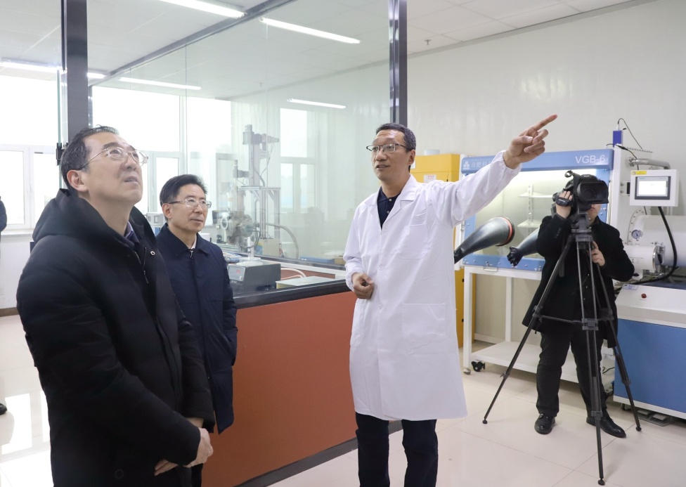 杨震一行来到贺兰山校区科技楼,实地调研了学校整体发展、光伏组件回收实验室研发、无码动漫