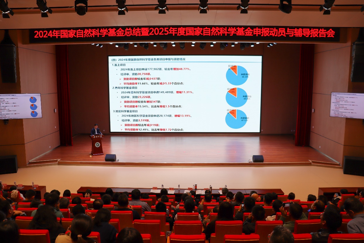 10月9日晚,我校在笃行楼一楼报告厅召开2024年国家自然科学基金总结暨2025年度国家自然科学基金申报动员与辅导报告会。校领导彭志科、李学斌、聂丹、王青云出席会议。