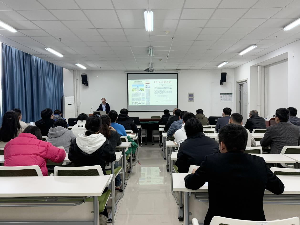 11月20日下午,学院党总支书记刘国强主持开展“书记讲党课”活动。党总支副书记兼副院长王海龙紧密结合正在开展的本科教学审核评估工作,以“顽强拼搏、开放包容,做好学校综合改革先锋队”为题,回顾学院发展历程以及在科研、教学、人才培养等方面取得的成绩、存在的问题,为全体教职工上了一堂生动的党课。要求大家抓住学校综合改革的契机,顽强拼搏,勇于担当,积极创新,做好改革先锋队,为培养高素质专业人才努力奋斗。