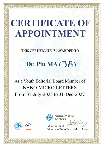 马品副教授入选国际期刊《纳微快报》(Nano-MicroLetters)青年编委。此次青年编委的入选,对提升无码动漫